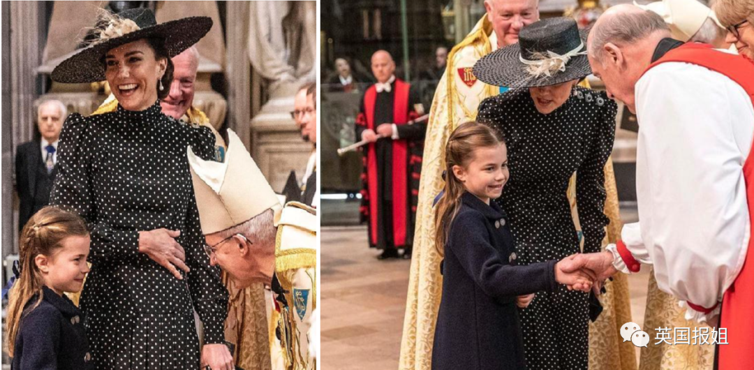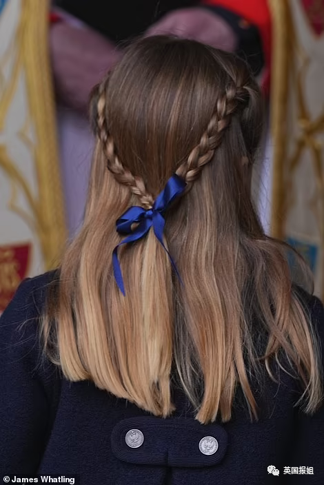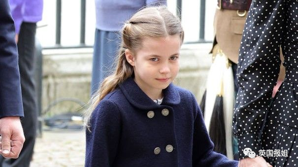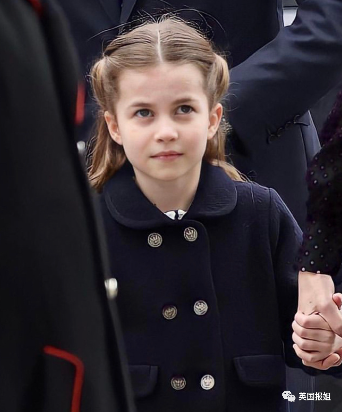 这次夏洛特小公主梳了公主头,再加上因为紧张而表情凝重,甚至需要妈妈提醒才展露笑颜。