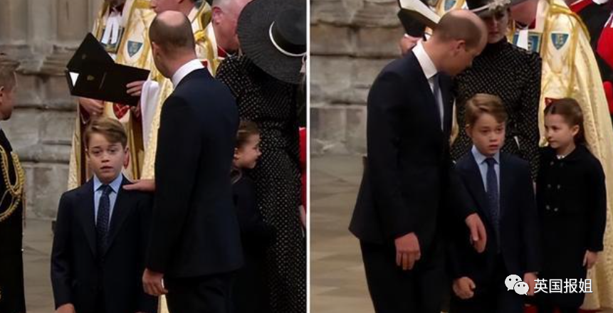 乔治王子深呼吸了好几次,不停地舔嘴唇,揪着自己的衣服。而夏洛特小公主也一直东张西望,保持着严肃凝重的表情,不苟言笑。