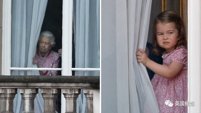 不过最为王室粉丝津津乐道的,还是这张小公主和女王一起掀开窗帘向外看去的照片。