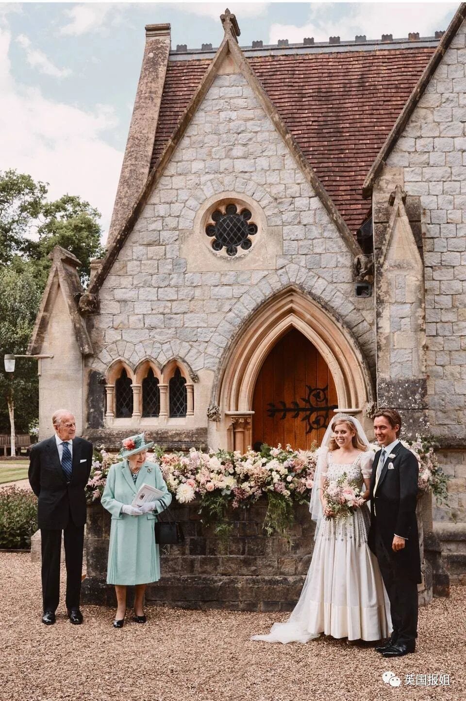 孙女碧翠丝公主的婚礼上,又是一身蓝色套装。