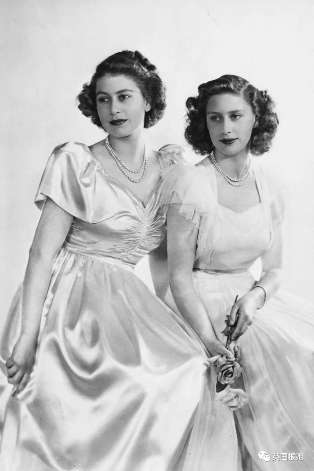 1946年,20岁的伊丽莎白和妹妹玛格丽特拍摄合照,尽管她当时还是个初入社交圈的少女,但已经出落得非常优雅、落落大方了。