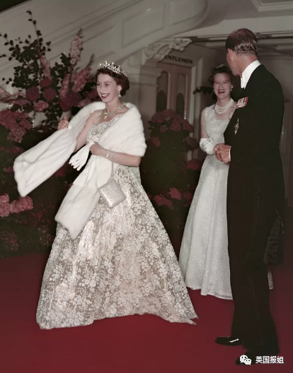 花花元素在年轻的女王衣橱里被运用得很多,1954年访问澳大利亚时,她穿的同样是一件奢华的花卉礼服。