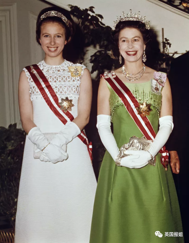1969年,女王带着女儿安妮公主去奥地利进行国事访问时,穿着的这件绿色A字礼服也很不错,简约的同时又很出彩。