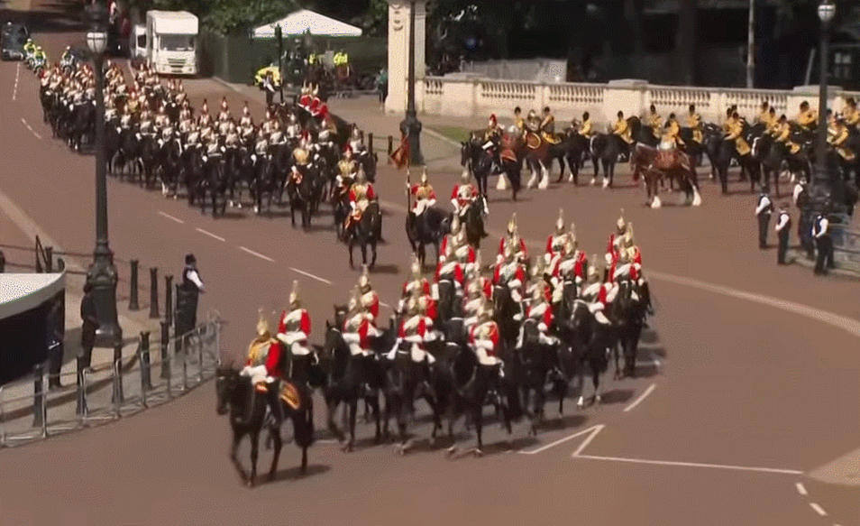 按照一直以来的规矩,阅兵队伍路线,是从白金汉宫到林荫大道,再到皇家骑兵卫队阅兵场。