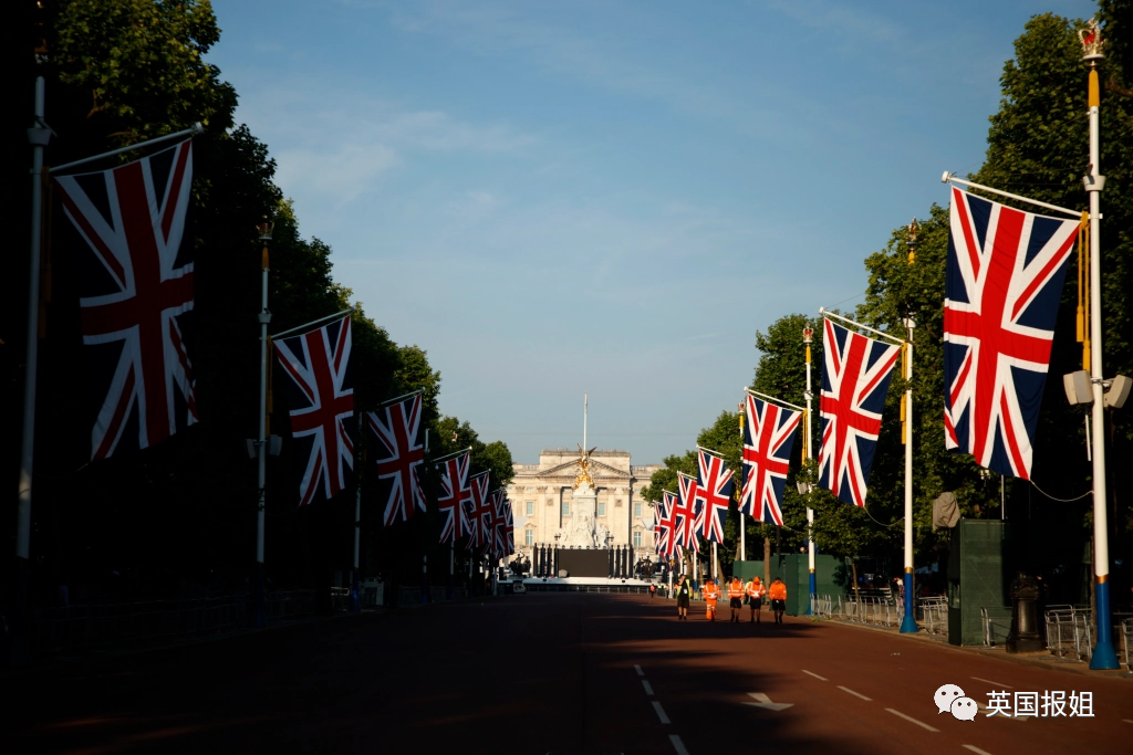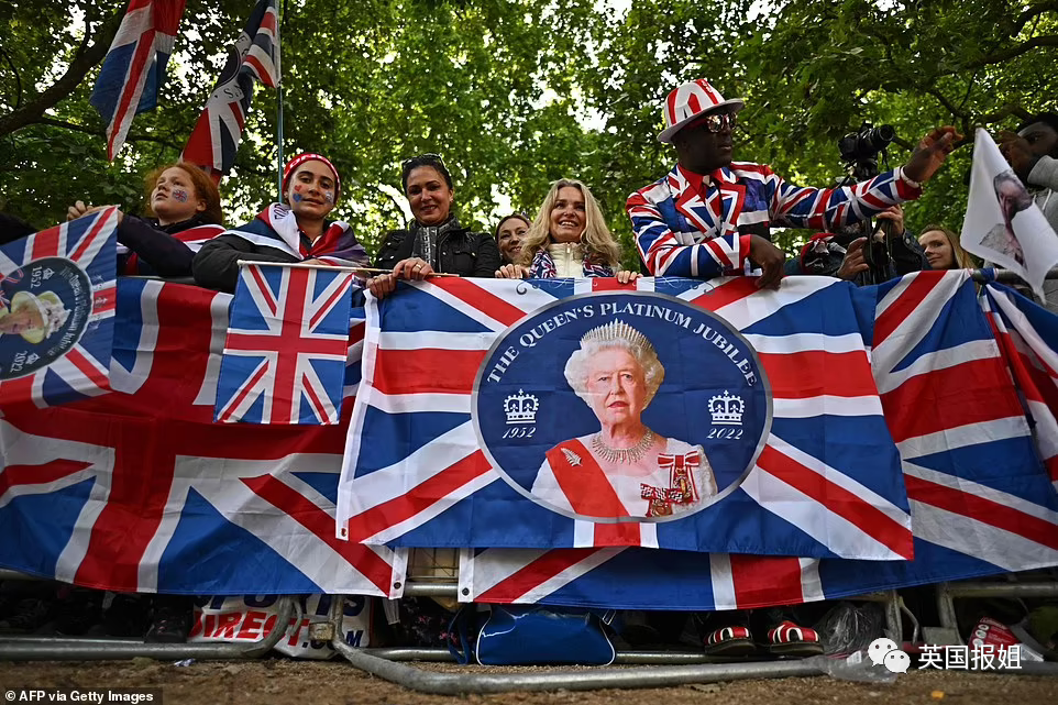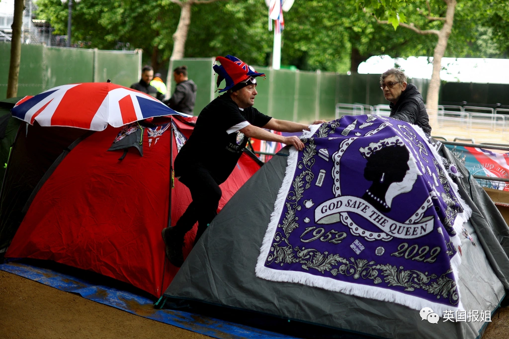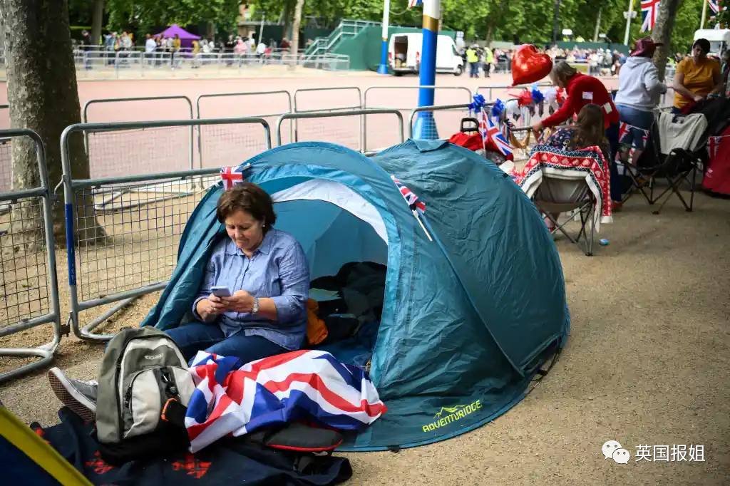 这条路线上已经插满了英国国旗,而围栏后,狂欢群众已经层层叠叠堵得水泄不通,甚至有人前一天就带好了东西来扎营,争取占一个好位置。