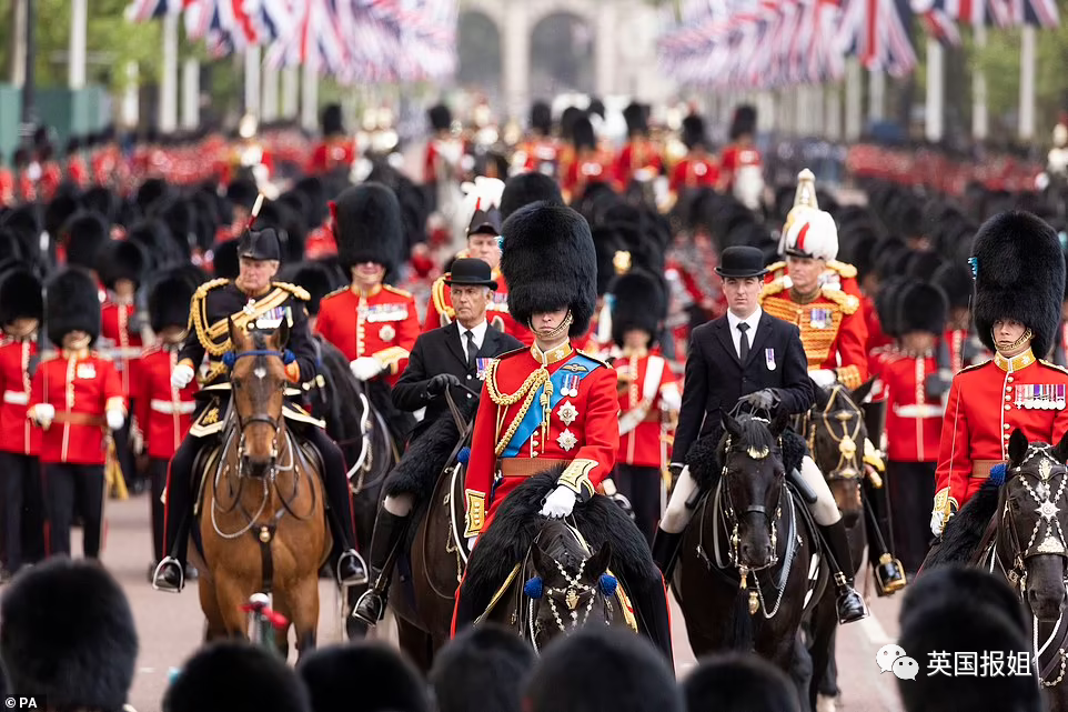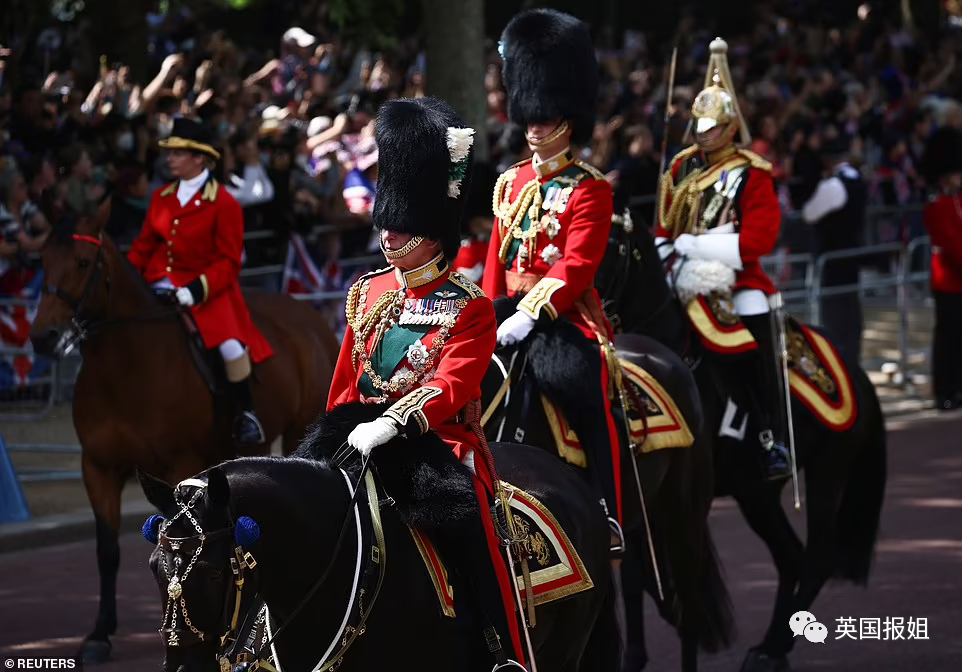 查尔斯王储、威廉王子、安妮公主,则骑着马出现在公众面前。