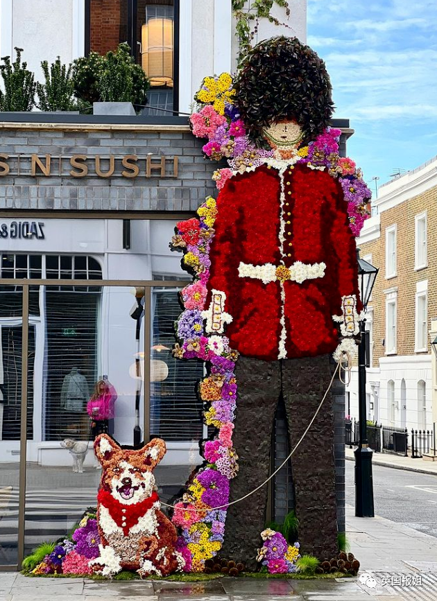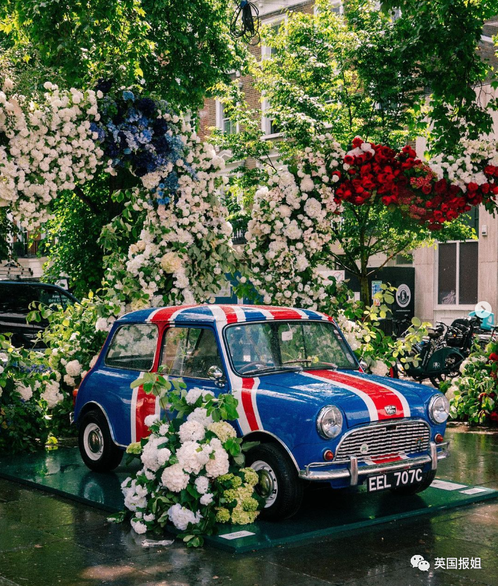 有的用鲜花和植物拼出了很英式的图案。