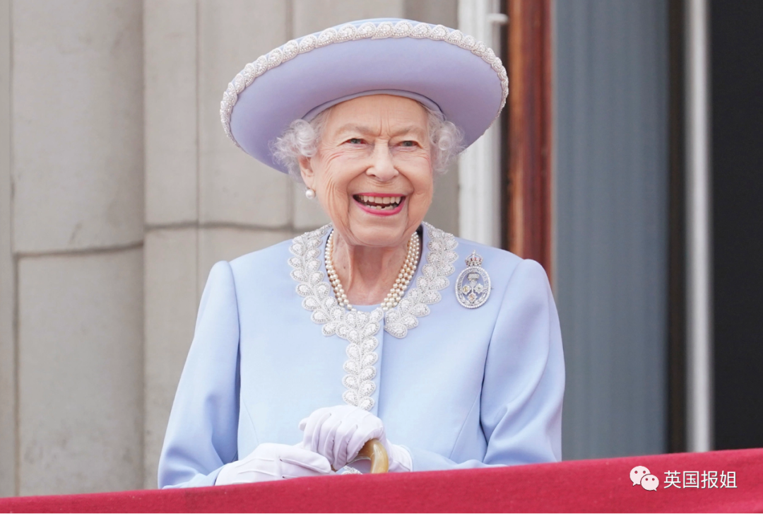 女王看上去精神状态非常好,一直在微笑。