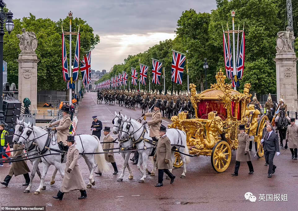 往年禧年阅兵的高潮,是女王乘坐她重达4吨的黄金马车,与民众挥手。