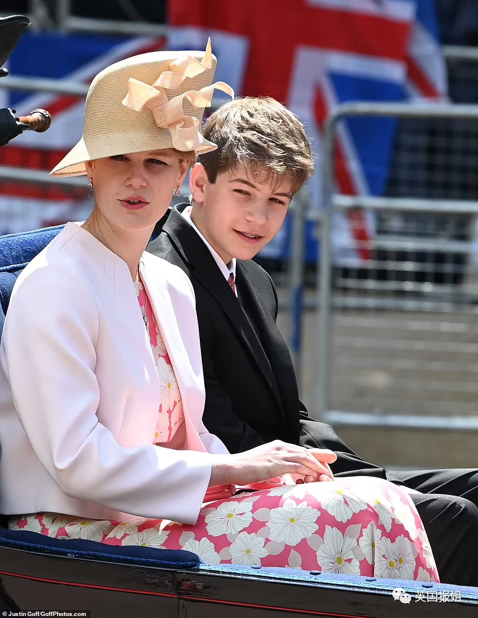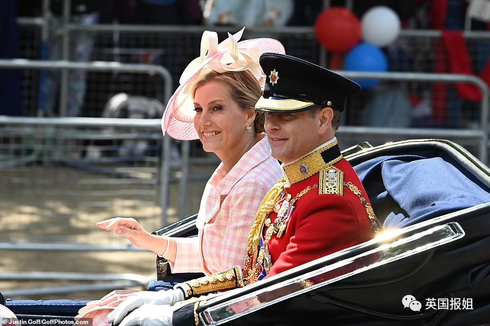 第二架马车上,坐着女王的三儿子爱德华王子,和他的妻子苏菲、女儿露易丝以及儿子詹姆斯。