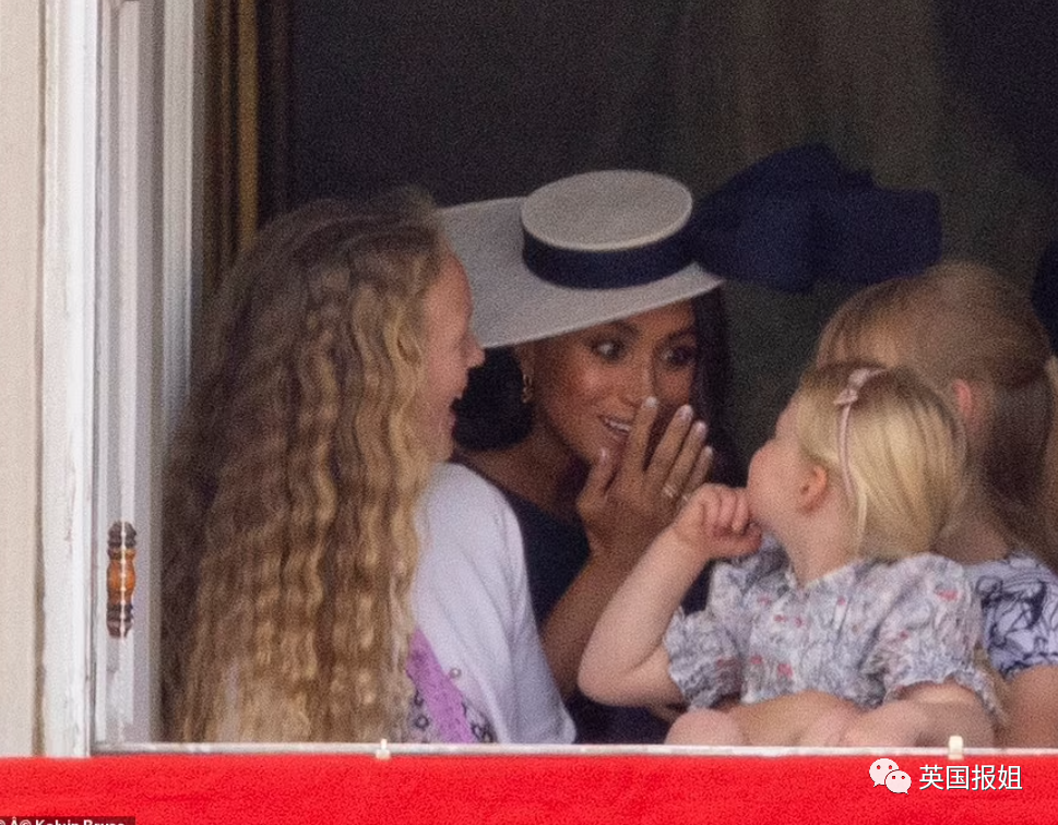 过了一会儿,梅根还在和王室的小朋友们一起玩耍,看上去把孩子们逗得很开心。