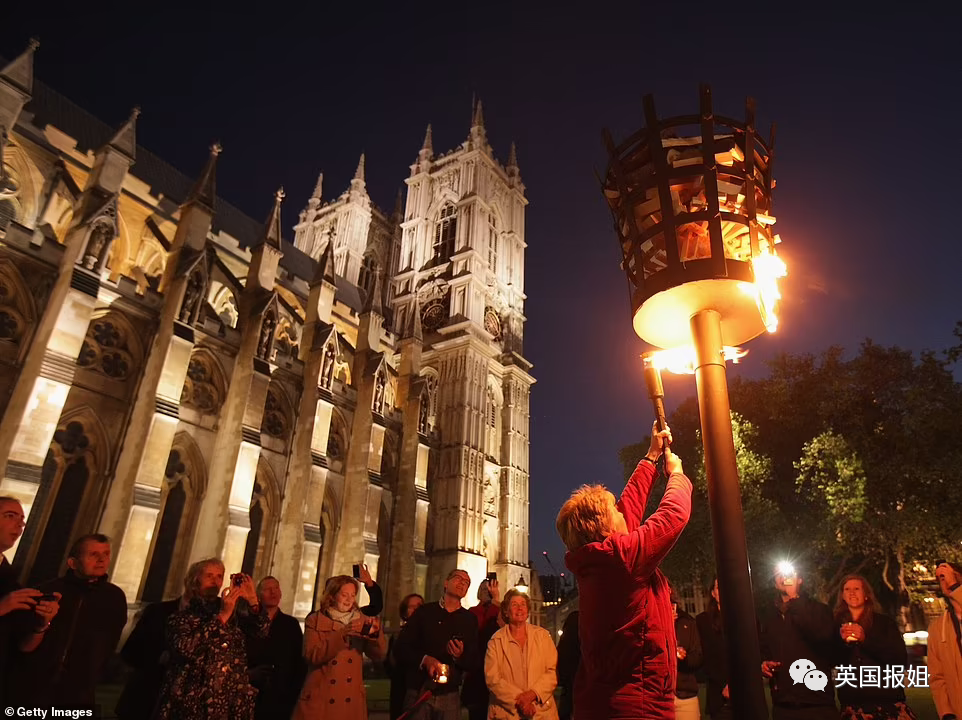 再晚一点,等英国时间晚上9点25分,天色暗下来,他们就将进行今天的最后一项活动,点灯仪式。