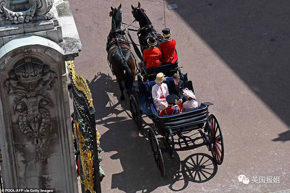 在短暂观看了十分钟后,女王回到了屋内继续休息,等待阅兵仪式结束。