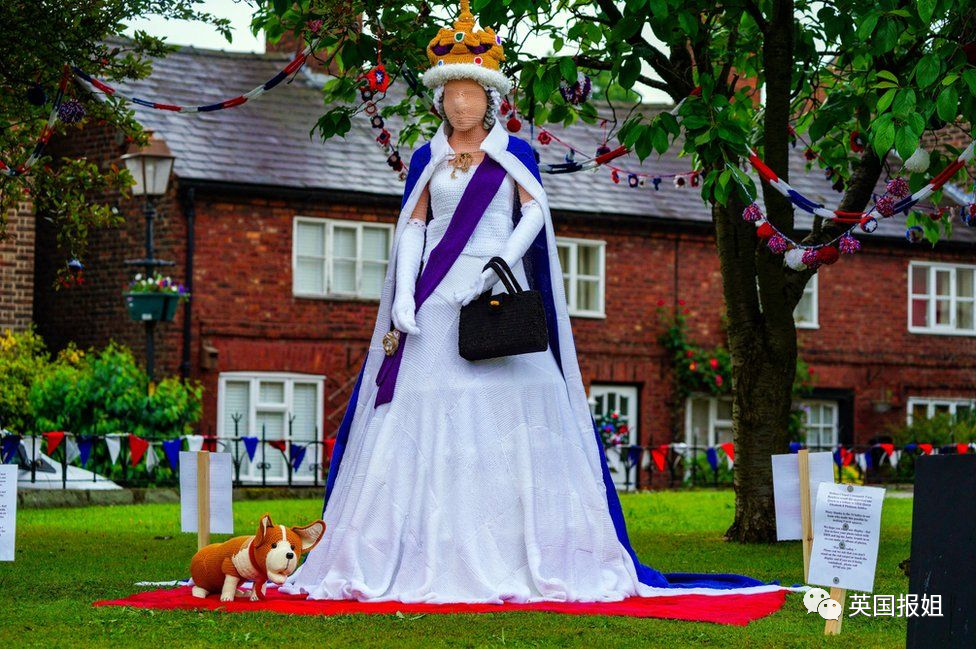 甚至还有人钩了女王的“等身手办”,配上了可爱的柯基。