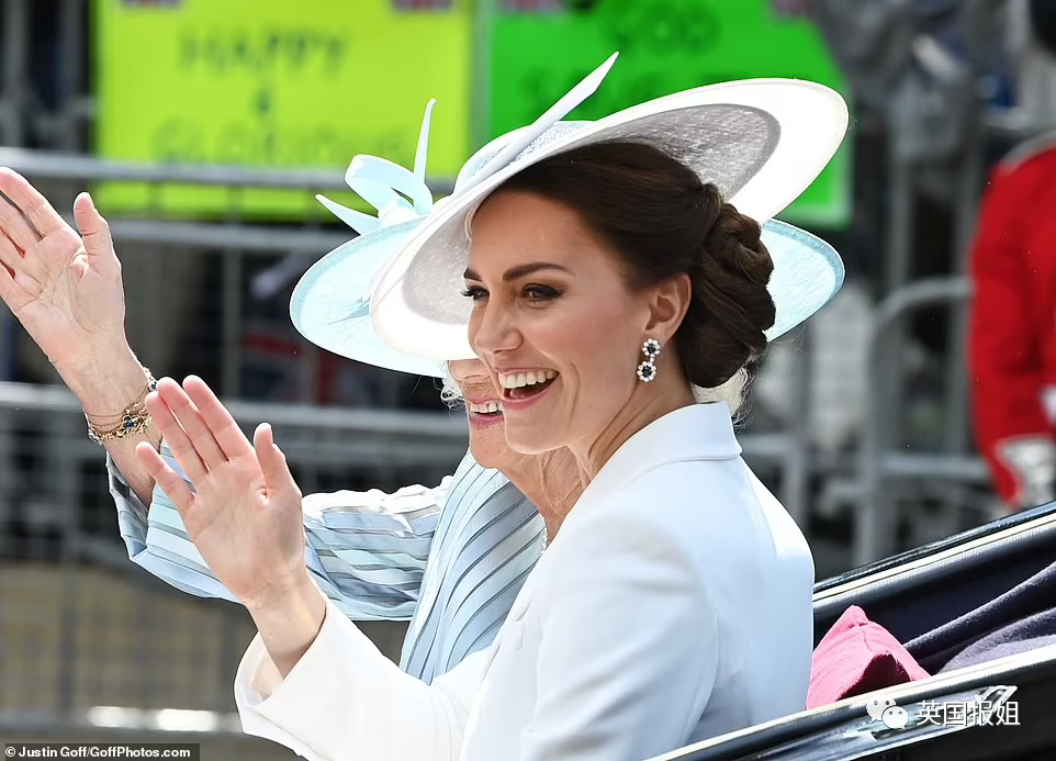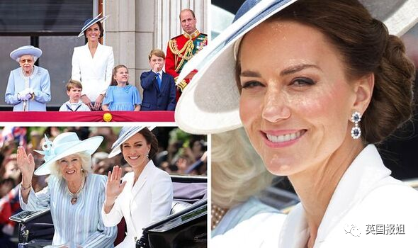 今年凯特就更厉害了,直接站在了女王旁边,“对标”查尔斯。