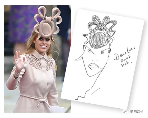 王室的“帽子狂魔”碧翠丝公主这个狂放的蛋卷帽就是Philip Treacy设计的:
