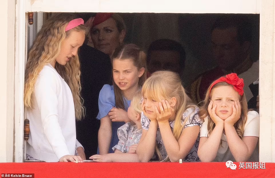 米娅是安妮公主的女儿Zara的女儿。米娅只比夏洛特大一岁,两人在窗前小打小闹,非常活跃。