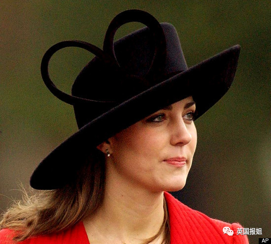这顶有海军蓝元素的帽子,主要是为了衬托她的蓝宝石耳坠。