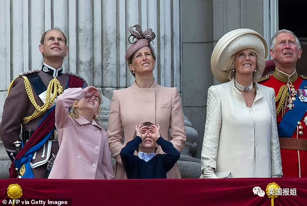 2013年,女王的小儿子爱德华一家也在阳台上参观了阅兵。