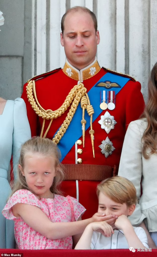 2018年皇家阅兵仪式上,小乔治因为话太多被萨凡纳一巴掌捂住嘴。威廉的表情也太好笑了。