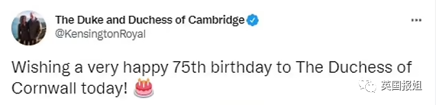 而王室的核心成员,女王还有威廉凯特夫妇,也准时用官方账号给上了祝贺。