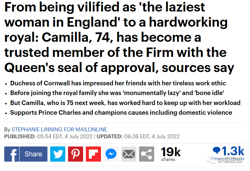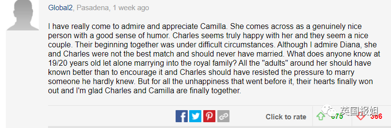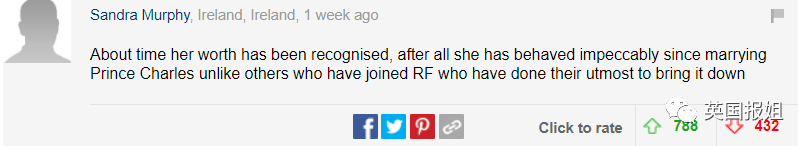 “是时候承认她了。毕竟自从嫁给查尔斯王子以来,她表现得无可挑剔,不像其他加入王室家庭的人,竭尽全力抹黑王室。”