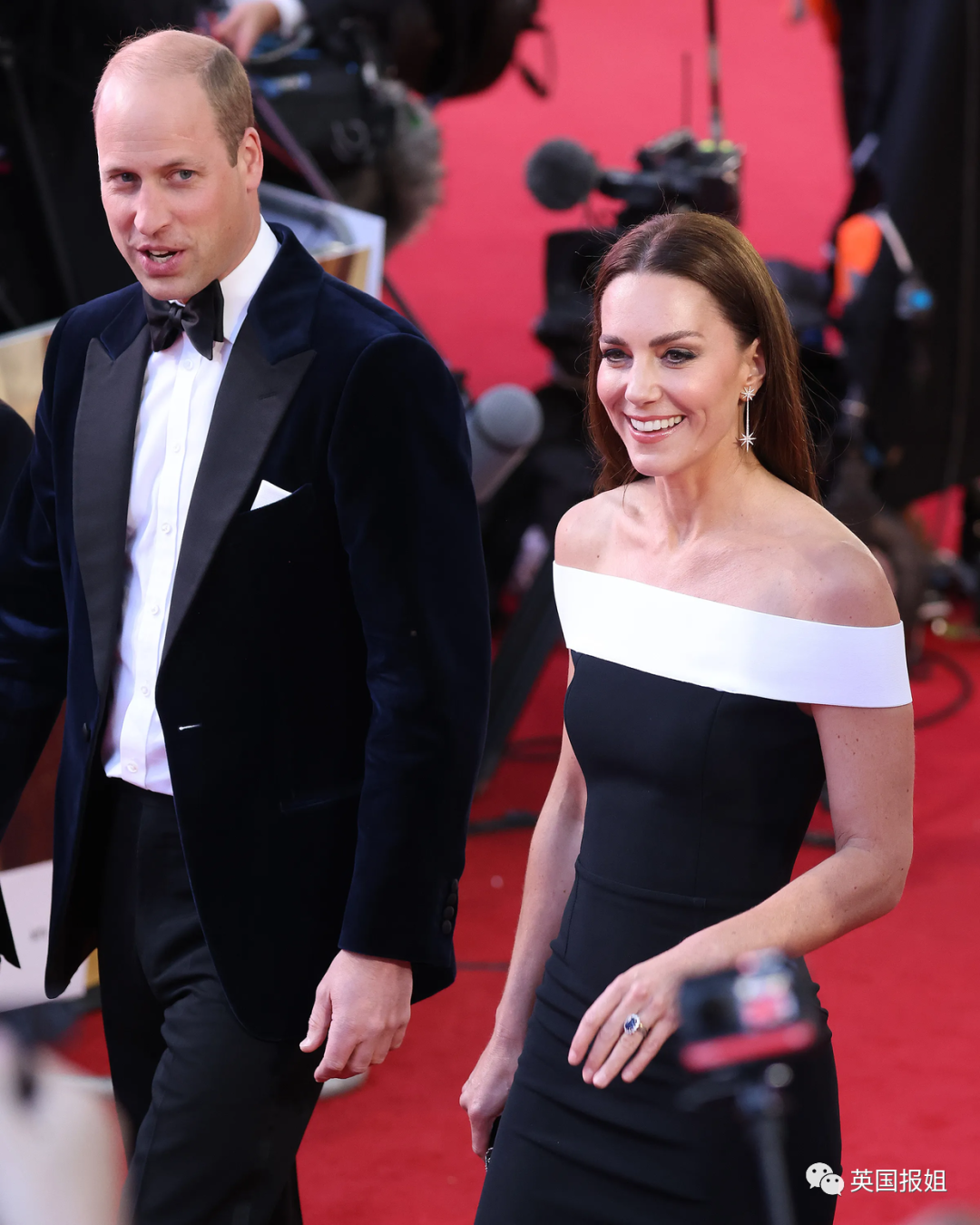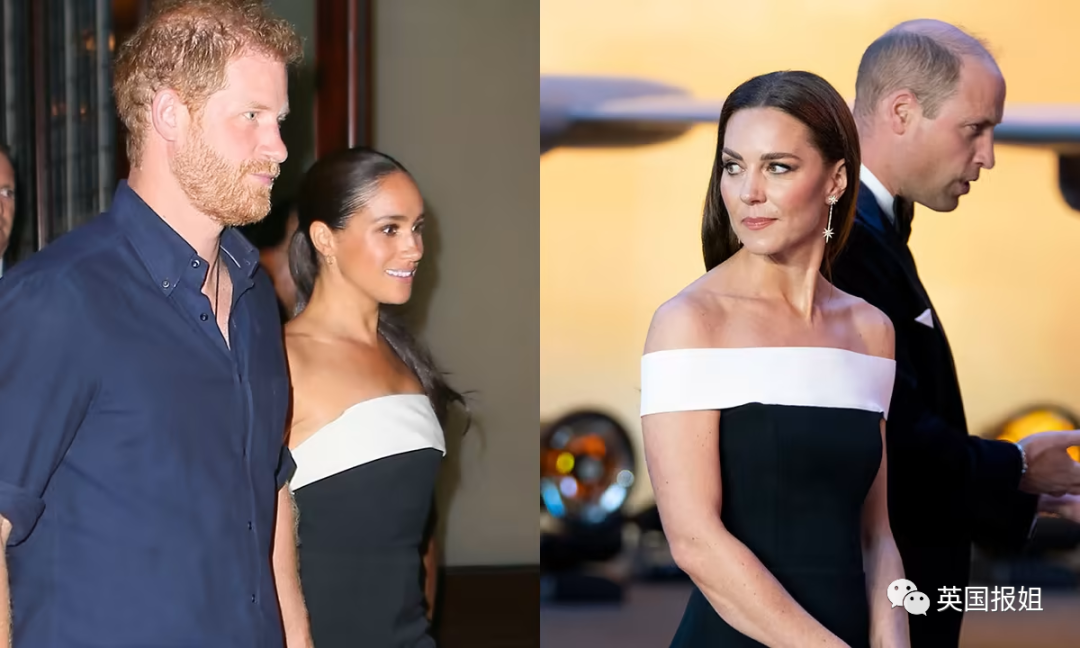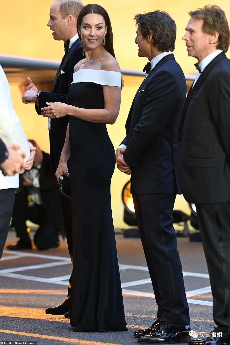 几个月前,凯特在英国参加电影首映时,穿的礼服裙也是黑白拼色的,乍一看还以为两人撞衫了。