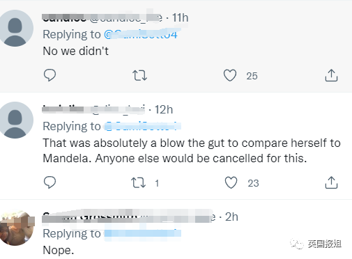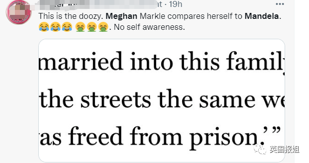 拿梅根嫁入王室和重塑了南非的曼德拉比肯定是不合适的,虽然这句话梅根只是转述,但网友还是觉得她太自大: