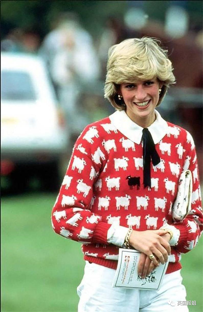 戴安娜的毛衣在当年造成了多次断货潮流。最知名的是这款1980年看马球比赛时穿的毛衣。上面有一只小小的黑羊在一群白色绵羊中。