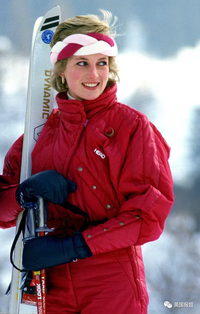 戴安娜也是个热爱运动的人,她的休闲运动穿搭让民众纷纷效仿。比如这套红色滑雪服,搭配着针织品头带就很亮眼。