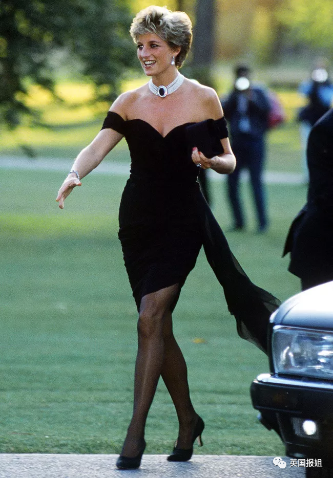戴安娜在出席伦敦的活动中,穿上了这件著名的“复仇礼服”。开启了戴安娜的性感礼服时代。