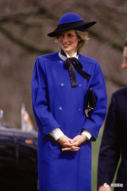 1985年,她在赫里福德大教堂参加公务,圆领双排扣大衣下,露出衬衣的领子,上面记着大大的黑色丝带,与手包交相辉映。