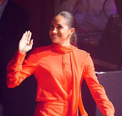 梅根这套大红套装被媒体认为是对戴安娜王妃的致敬。