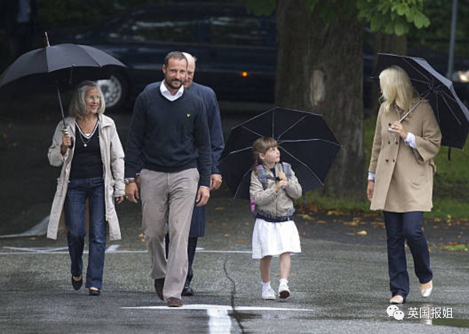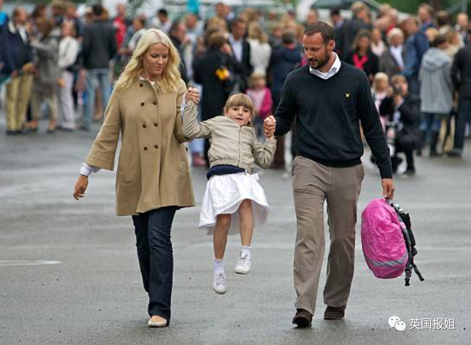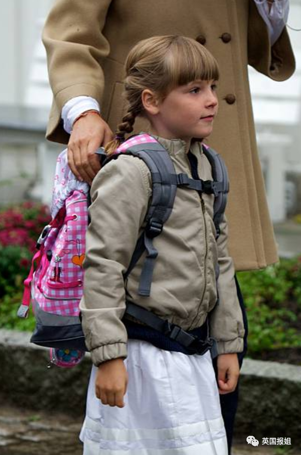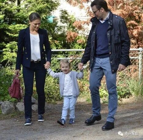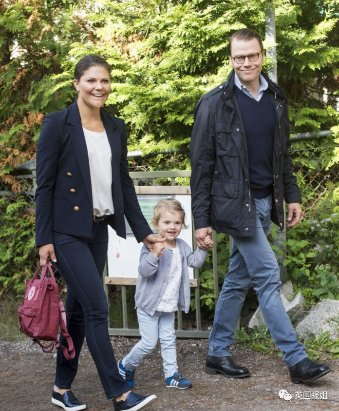 年纪稍小一点的还有瑞典的艾斯特尔公主,幼儿园第一天被王储妈妈和驸马爸爸牵着,一家人穿得都很朴实,像寻常人家送孩子上学一样。