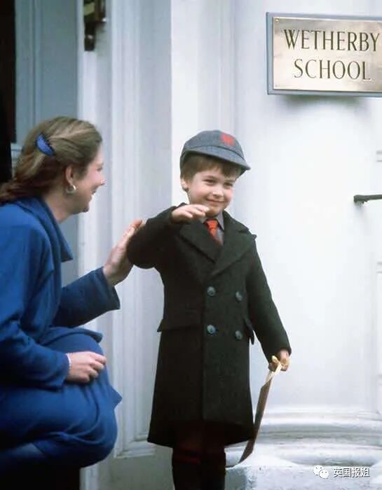 当时也是爸爸查尔斯和妈妈戴安娜带着他去的,威廉是英王室里第一位上私立托儿所的成员。