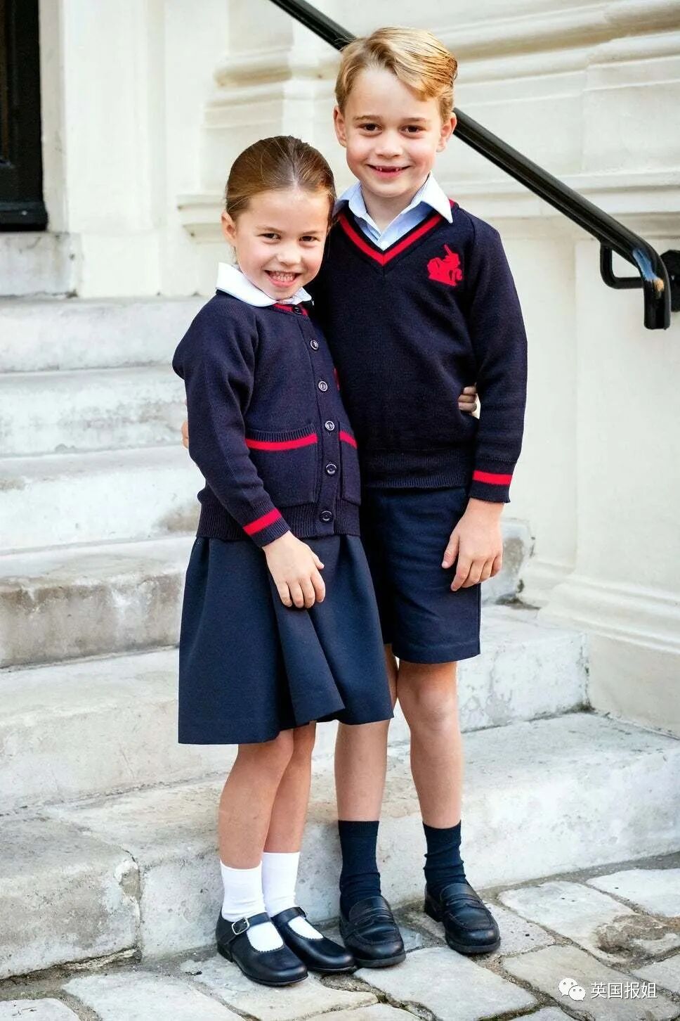 在这对姐妹花之后,王室家族上学第一天公开留念的传统就到了下一代,也就是威廉凯特的孩子们这一代,是大家熟悉的萌娃了。