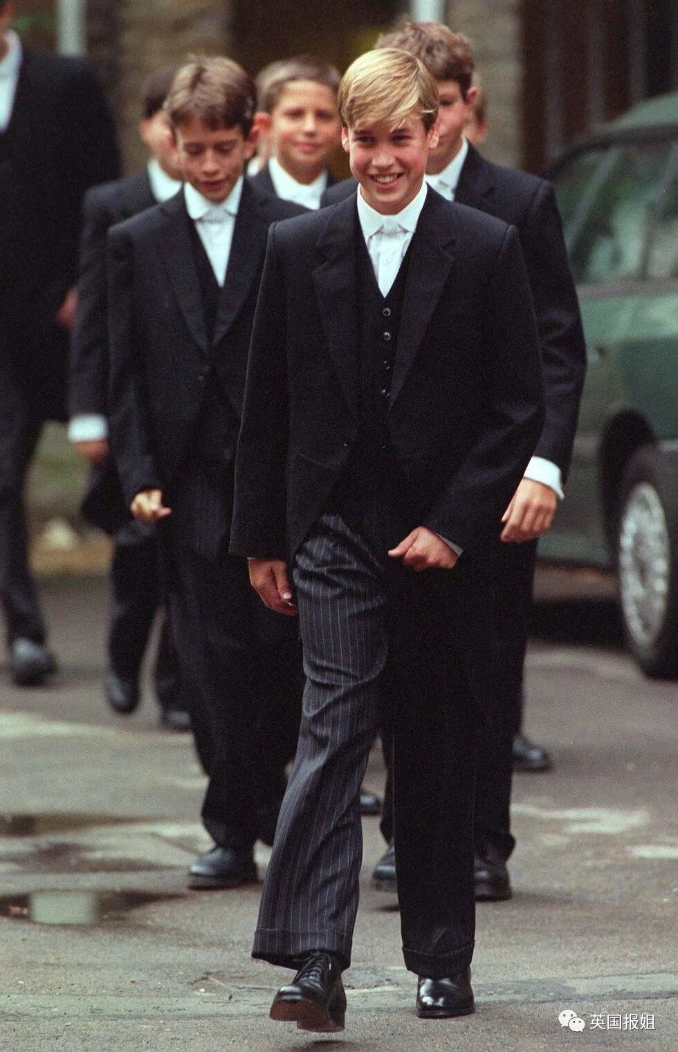 1995年,威廉去上伊顿公学,第一天必须一家人齐上阵,哈里:我提前过来熟悉一下环境。