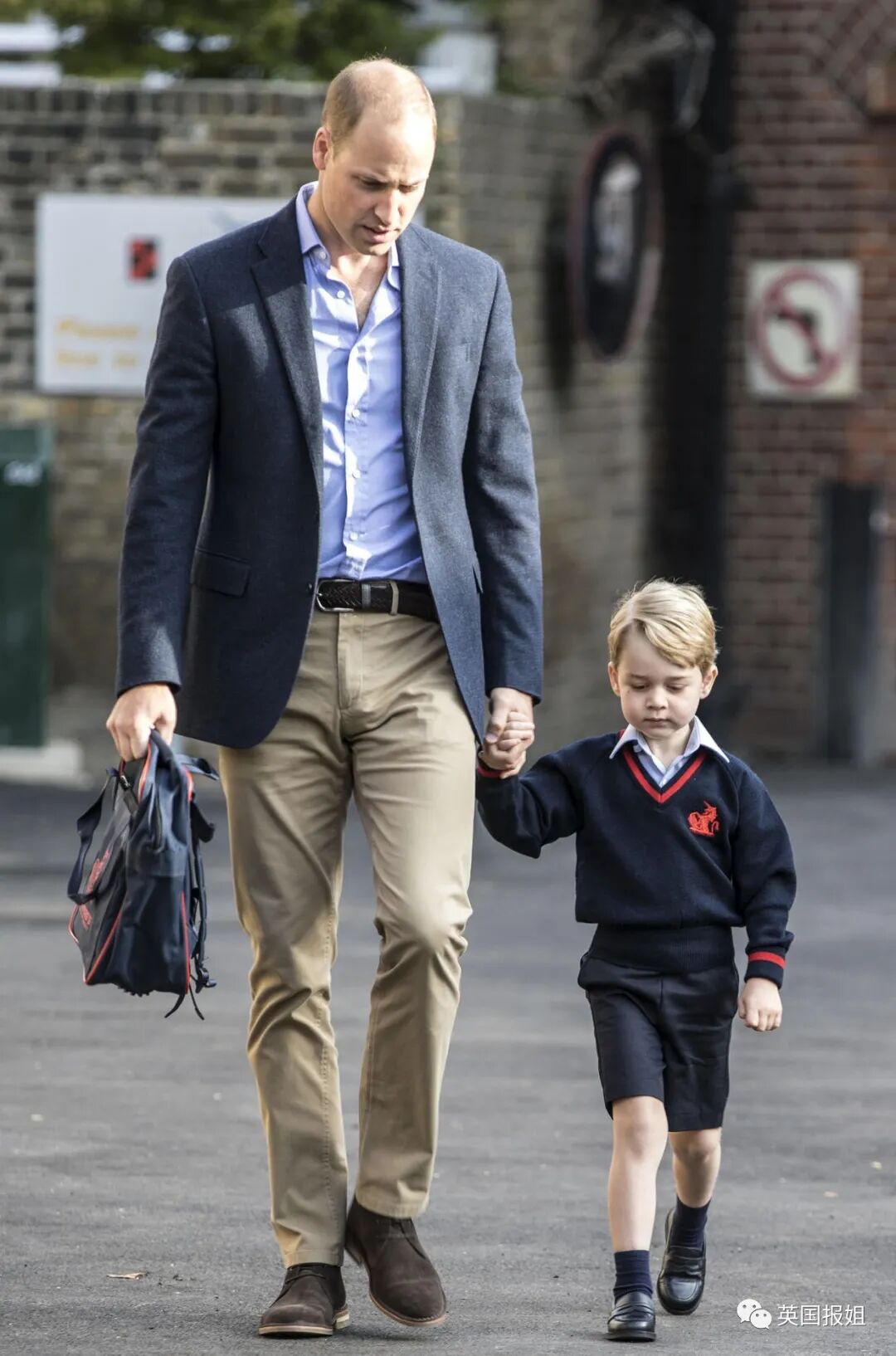 之后他去正式上小学,第一天是爸爸威廉领着他去的,因为凯特那时候怀着路易斯,孕吐非常严重,只能待在家静养。