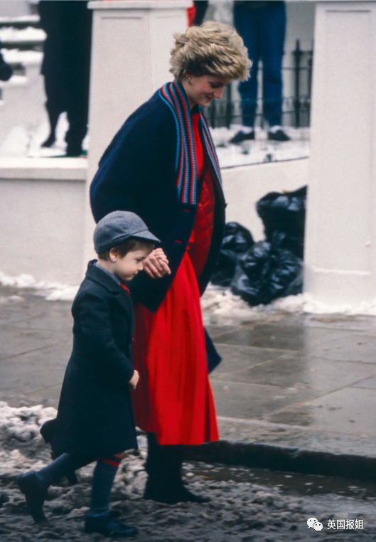 看着一身红衣红裙的戴安娜王妃,送两个意气洋洋的孩子去上学,很有种岁月静好的亲昵感。