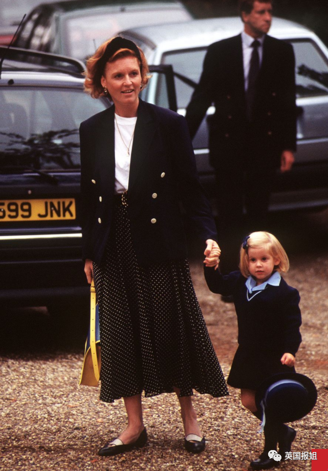 1991年,4岁的大女儿碧翠丝公主和妈妈莎拉弗格森手牵手去上学。