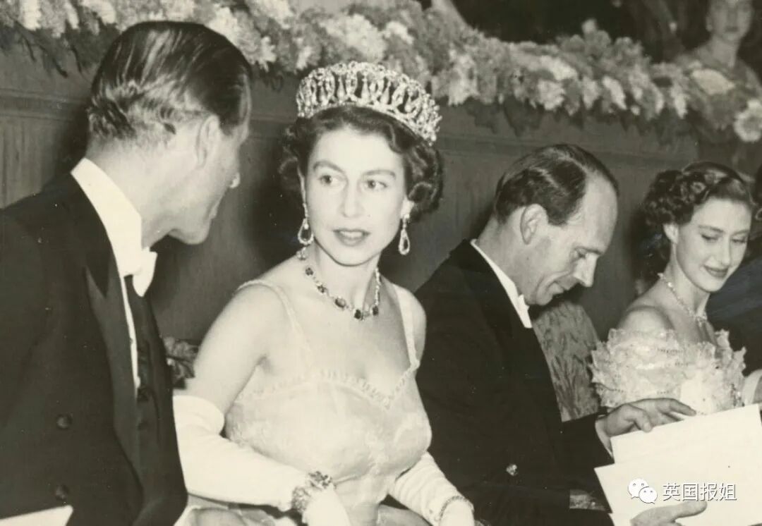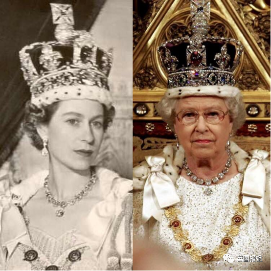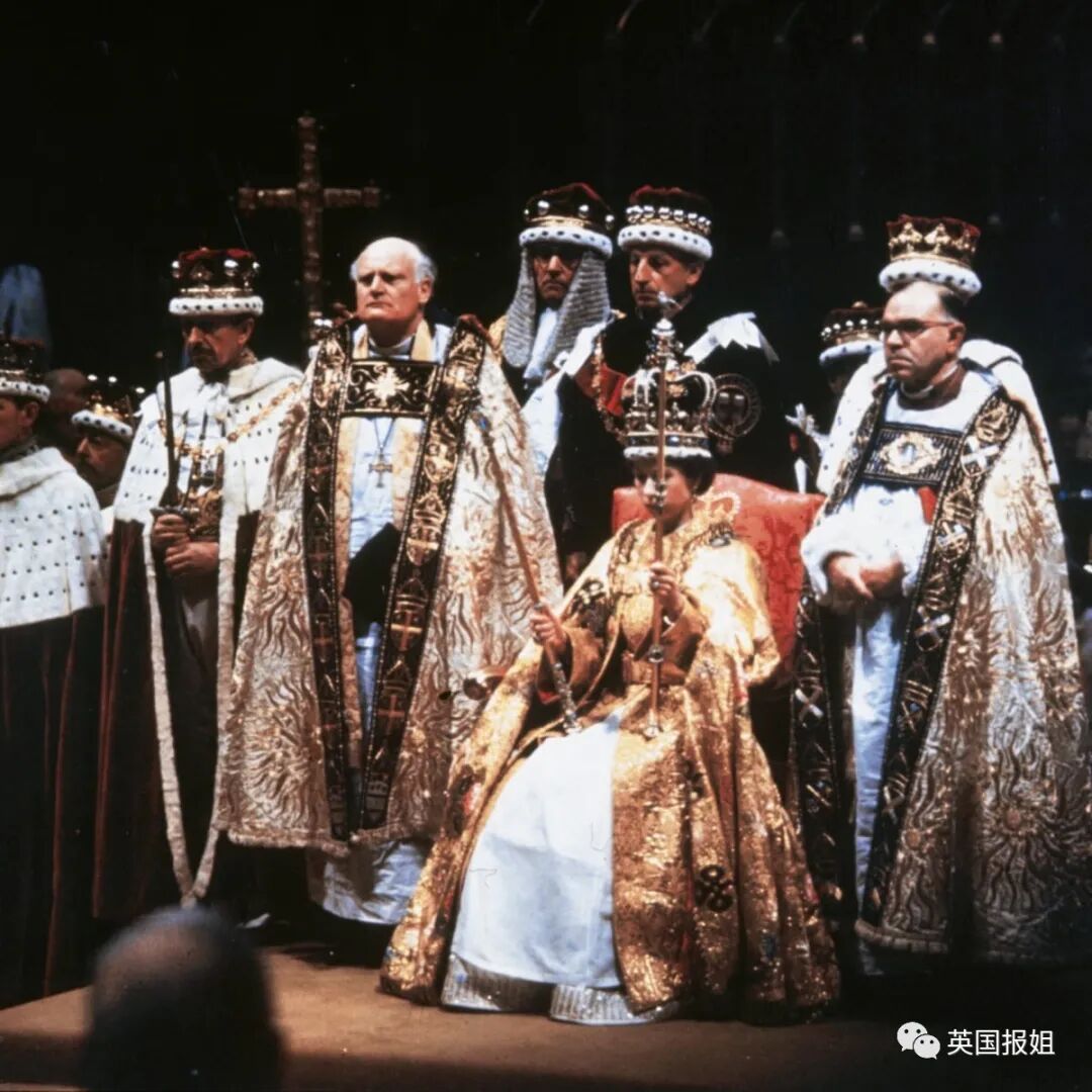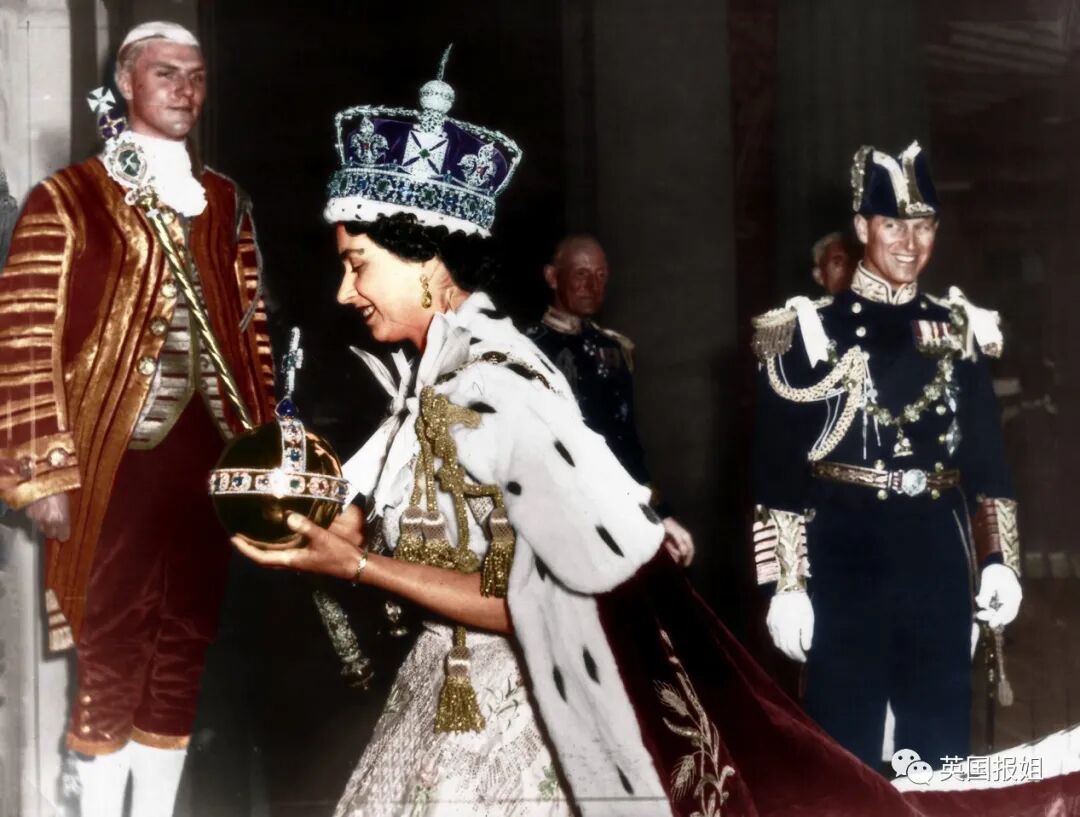 妹妹的情事插曲间,1953年6月2日,27岁的女王身着耗时8个月,镶嵌着那时所有英联邦国家花朵徽章的礼裙,头戴2.2公斤重的圣爱德华王冠,手握权杖和王权宝球,在威斯敏斯特大教堂加冕为王。