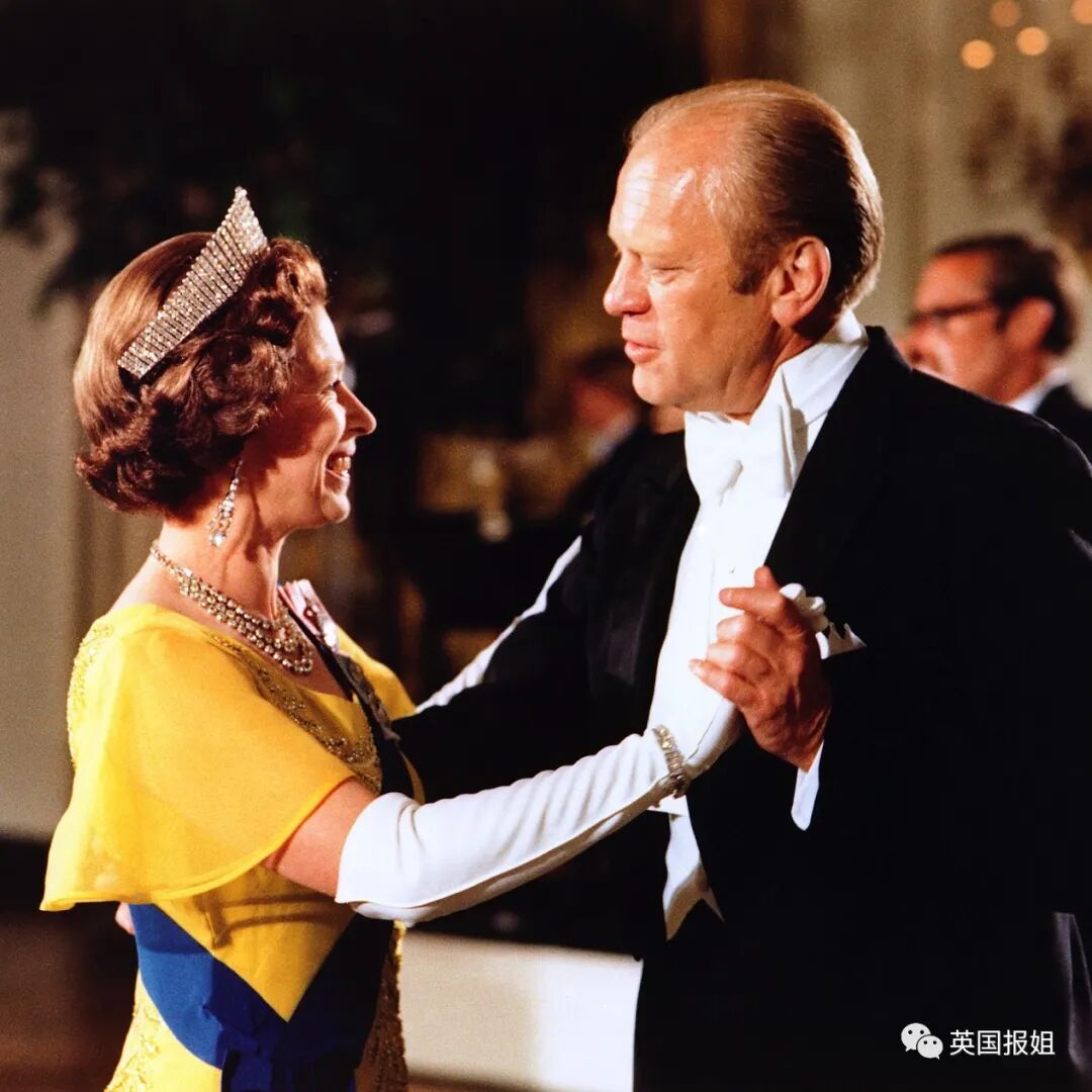 1976年与福特总统夫妇见面,还在白宫晚宴上与总统共舞。