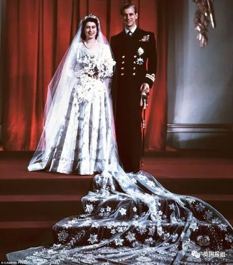 1947年11月20日,伊丽莎白和菲利普的婚礼在威斯敏斯特大教堂举行。因为顾及到战后英国的经济情况,她用自己的粮票购买了婚纱。
