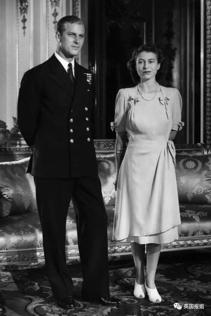 二战结束两年后,1947年7月9日,21岁的伊丽莎白与大她5岁希腊与丹麦王子菲利普订婚。