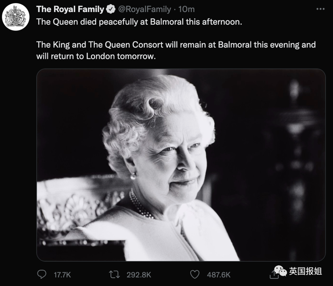 2022年9月8日,白金汉宫公告宣布:英国女王伊丽莎白二世在苏格兰巴尔勒莫尔庄园离世,享年96岁。
