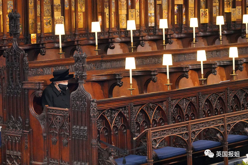 一年后她的丈夫菲利普去世,作为新冠高风险人群的她独自站在葬礼的角落。