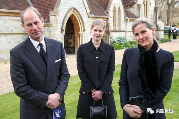 爱德华夫妇和大女儿在菲利普的葬礼上