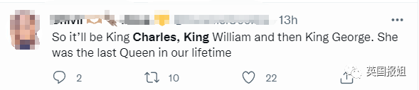 “所以以后就是国王查理、国王威廉和国王乔治的时代了,伊丽莎白二世是我们这代人活着最后见证的英国女王。”