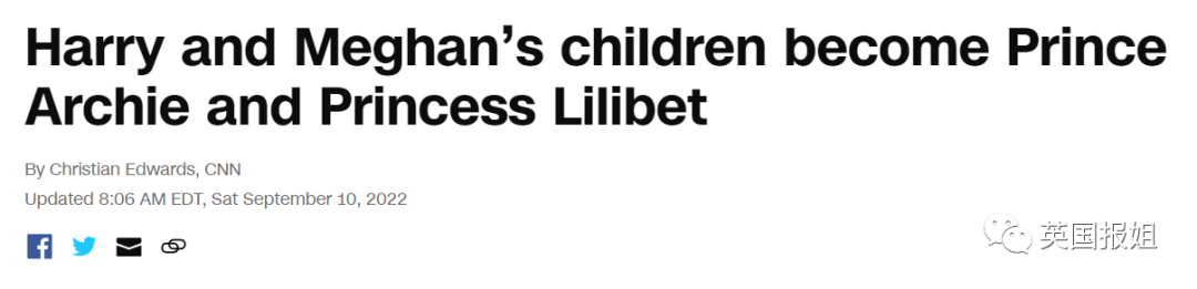 “哈里与梅根的孩子,成为‘王子’阿奇,和‘公主’莉莉贝特。”