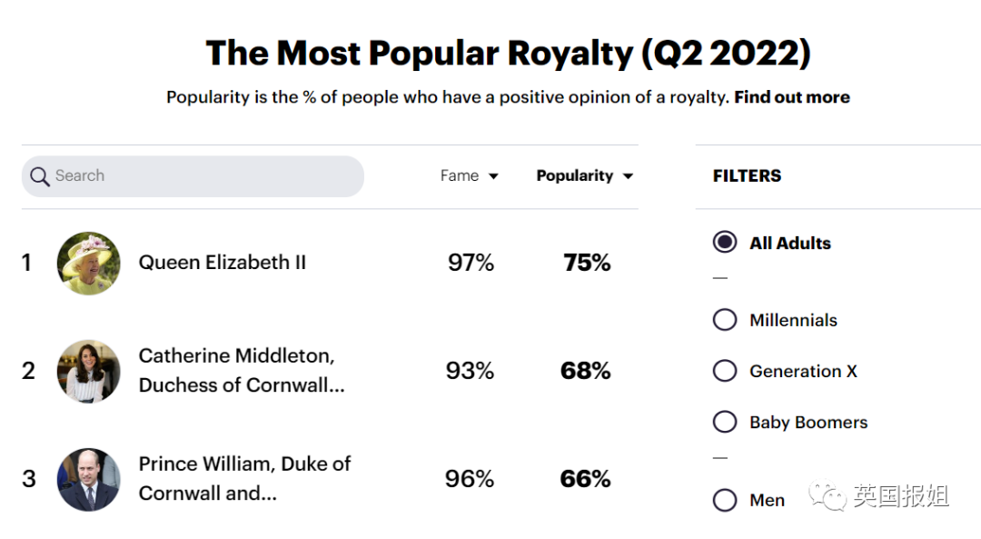 在上一季度的民调中,凯特甚至已经超过了她的丈夫威廉王子,成为王室第二受欢迎的成员,仅次于女王。